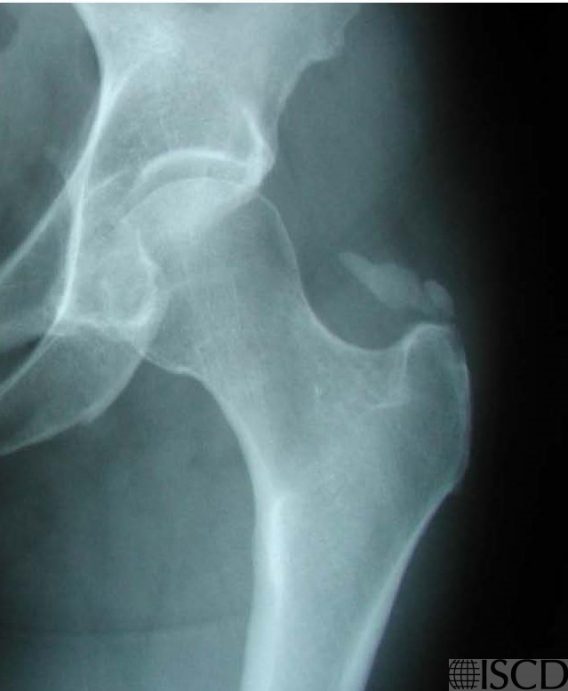 Calcific tendonitis is seen on this GE Healthcare left hip image.