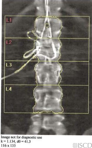 A catheter overiles l1 and L2, so those levels would be removed from analysis. The bone mineral density goes from normal to osteopenia with those levels removed from analysis.