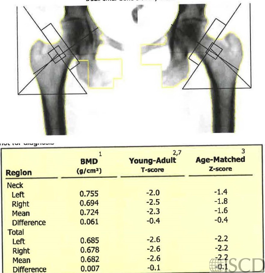 This is the bilateral GE Health proximal femur scan from a man with MEN-1.