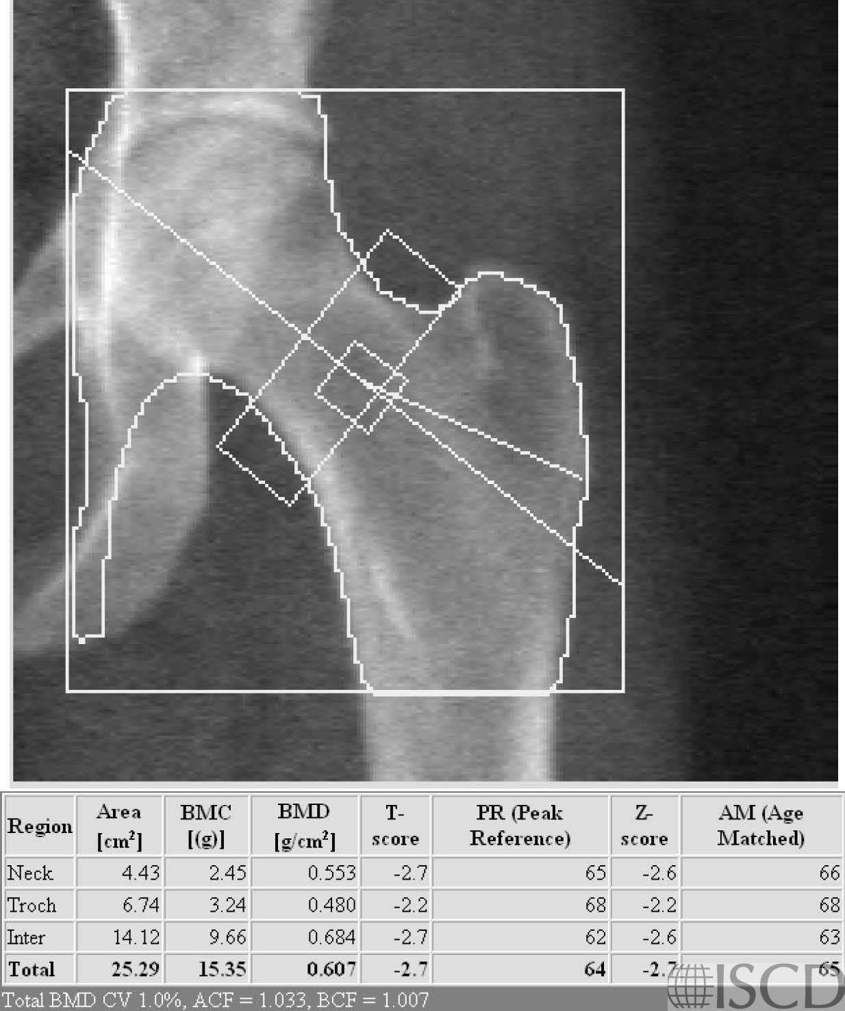 This is the Hologic left proximal femur scan from a premenopausal female with osteogenesis imperfecta.